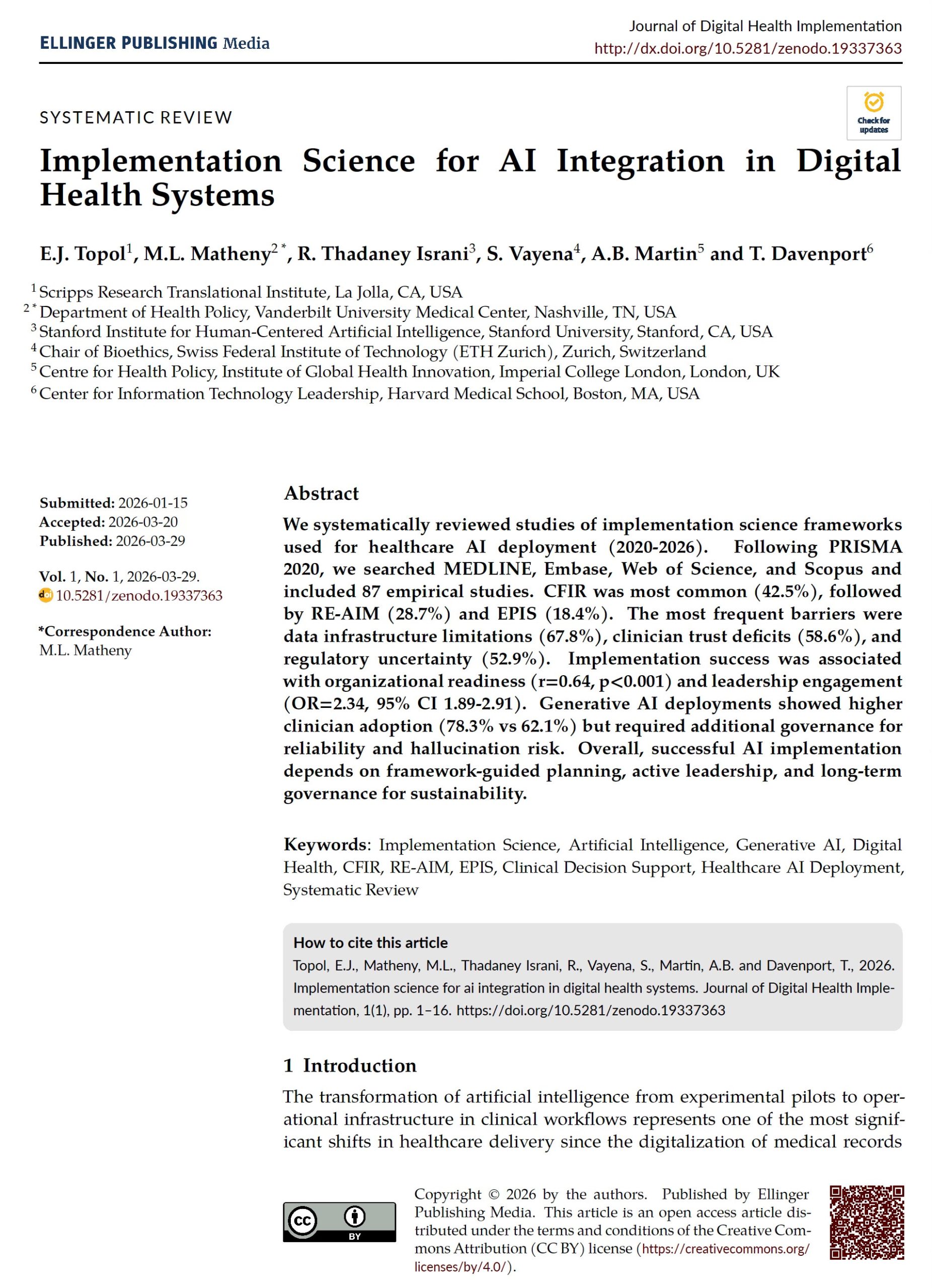And now, it’s author names on research papers being spoofed. Eric Topol, MD, the noted physician, cardiologist, health tech maven, and director/founder of the Scripps Research Translational Institute, just experienced Grand Theft Auto on his identity. He was listed as the lead author of a paper entitled “Implementation Science for AI Integration in Digital Health Systems”, along with five other author/contributors. It was published in the “Journal of Digital Health Implementation” by Ellinger Publishing Media on 29 March.
